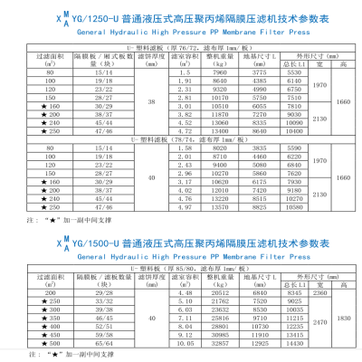 压滤机规格参数表3
